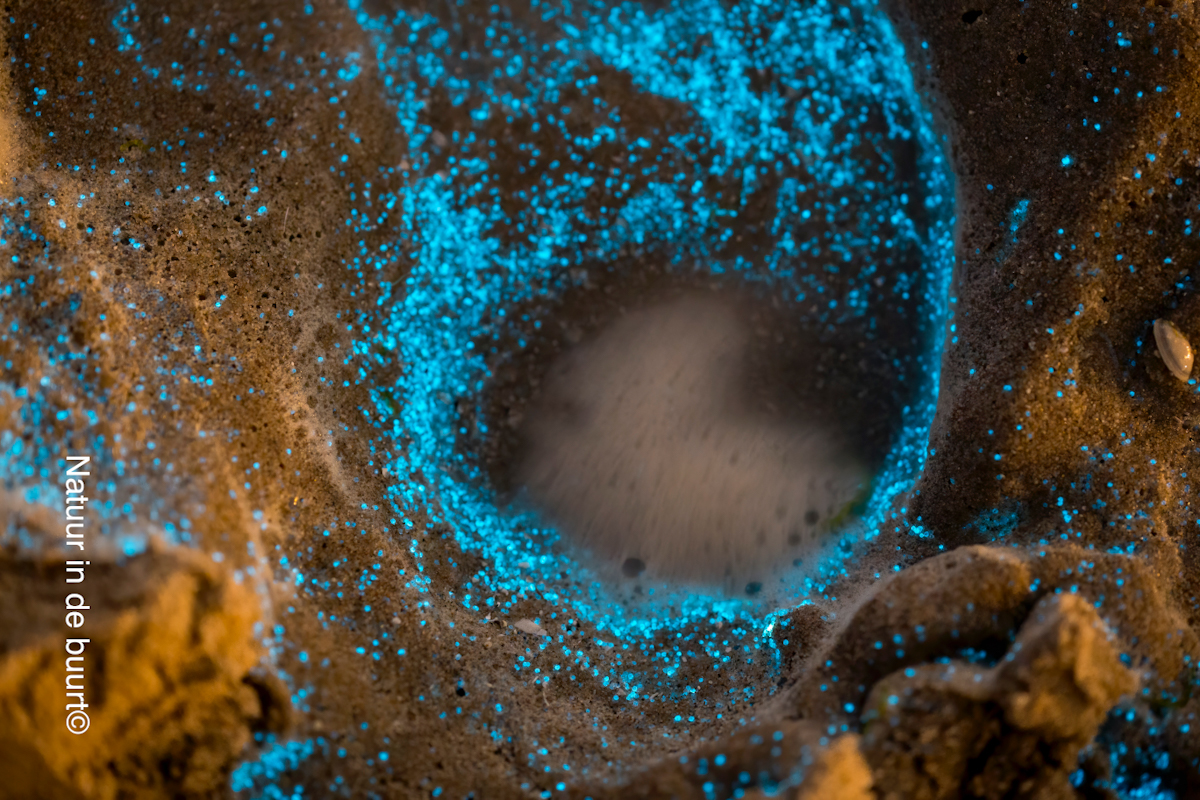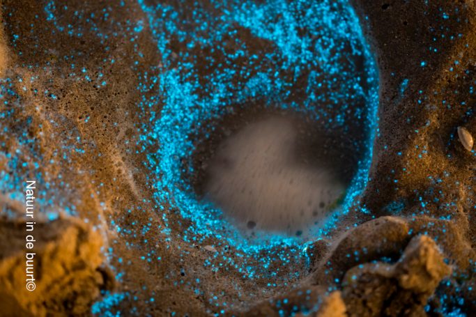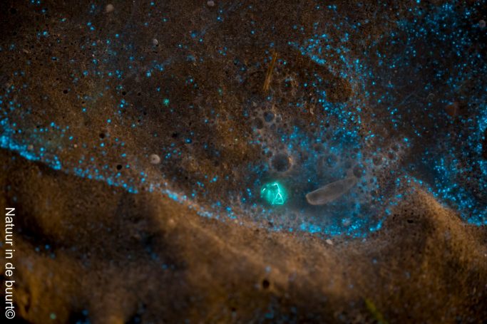 Tijdens het belichten van het in en uitstromen van water met zeevonk, blijft het schuim min of meer op z’n plek.