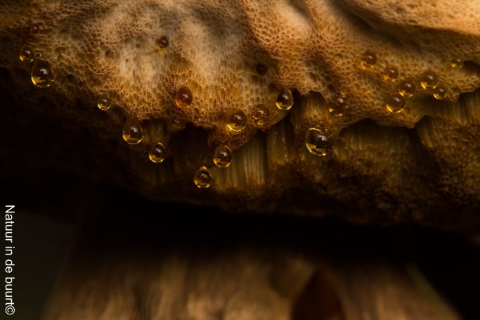 Meestal groeit deze zwam tegen een boom. Hier er bovenop zodat ik het tegenlicht van de zon kon vangen.